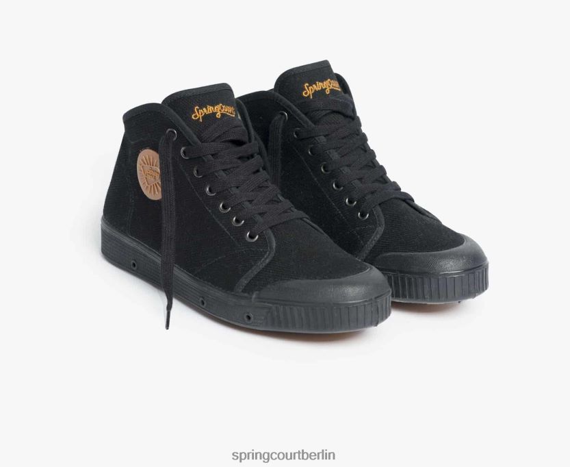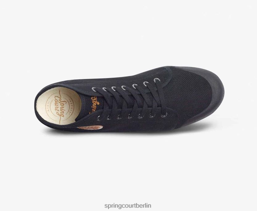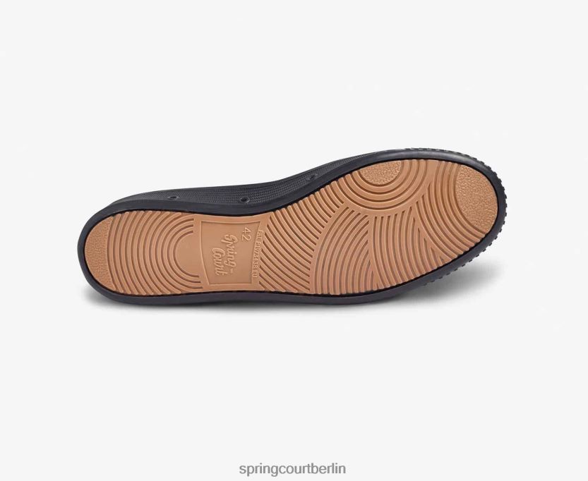 Das Obermaterial aus schwarzem Baumwoll-Twill folgt den schlanken Linien unseres Tennisschuhs.