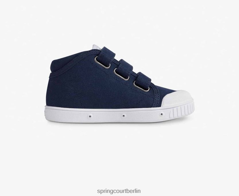 Das Marineblau ist ein schickes, zeitloses Must-Have, das Canvas-Obermaterial unterstreicht die kräftigen Linien unseres Tennisschuhs mit seiner belüfteten weißen Gummisohle.