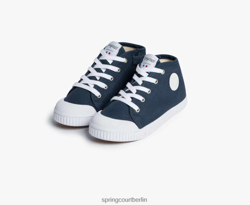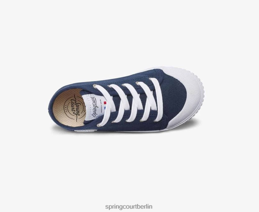 Das Marineblau ist ein schickes, zeitloses Must-Have, das Canvas-Obermaterial unterstreicht die kräftigen Linien unseres Tennisschuhs mit seiner belüfteten weißen Gummisohle.