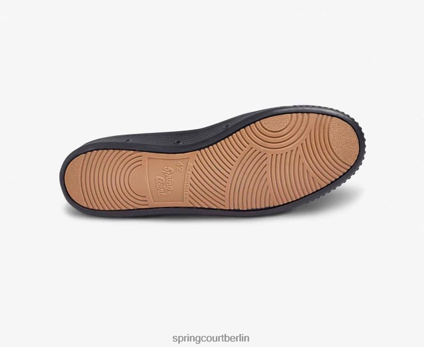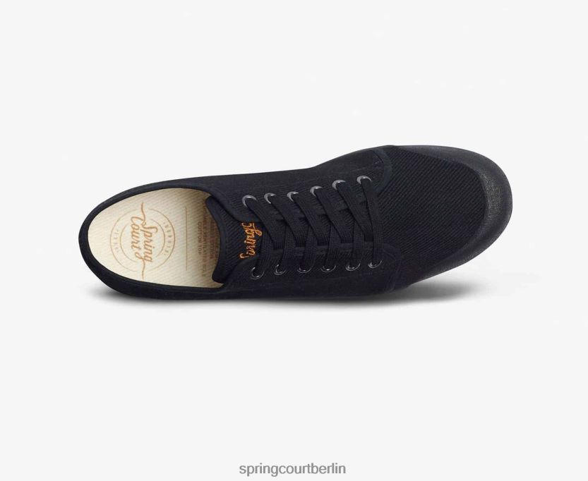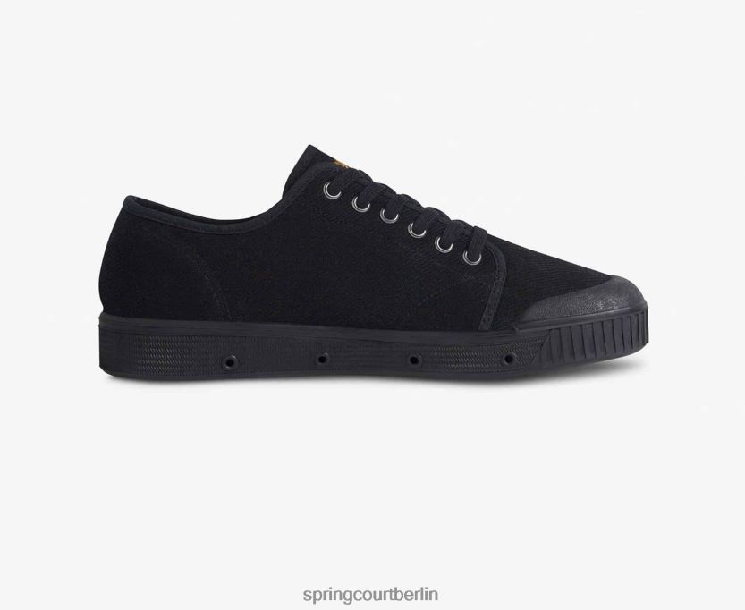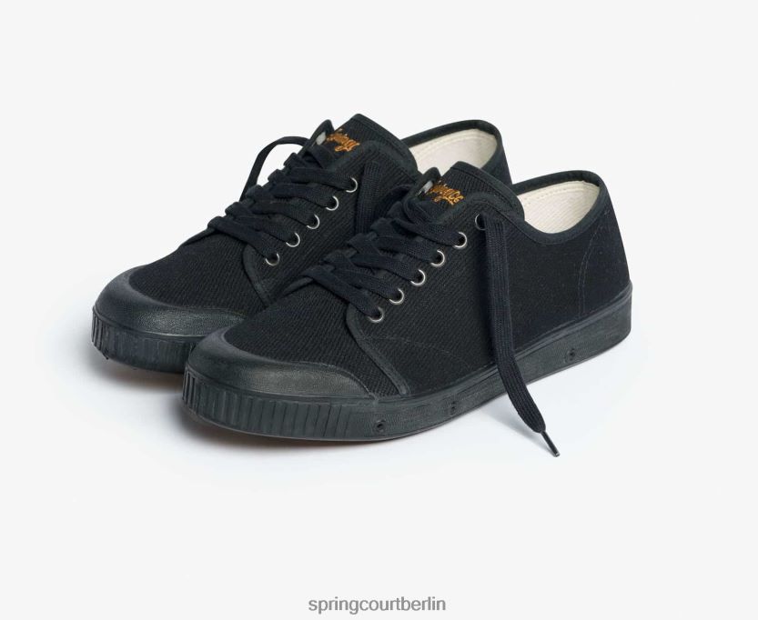 Das Obermaterial aus schwarzem Baumwoll-Twill unterstreicht mit seiner belüfteten Gummisohle die markanten Linien unseres Tennisschuhs.
