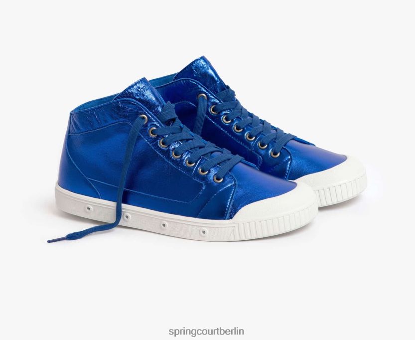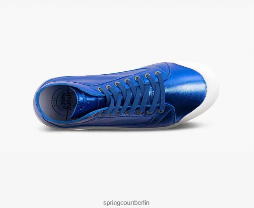 Mit dem ikonischen metallic-blauen Leder von Spring Court, das sein Know-how unterstreicht, wird dieser schillernde Stil durch die Hinzufügung eines feinen Silberfilms zum Leder geschaffen.